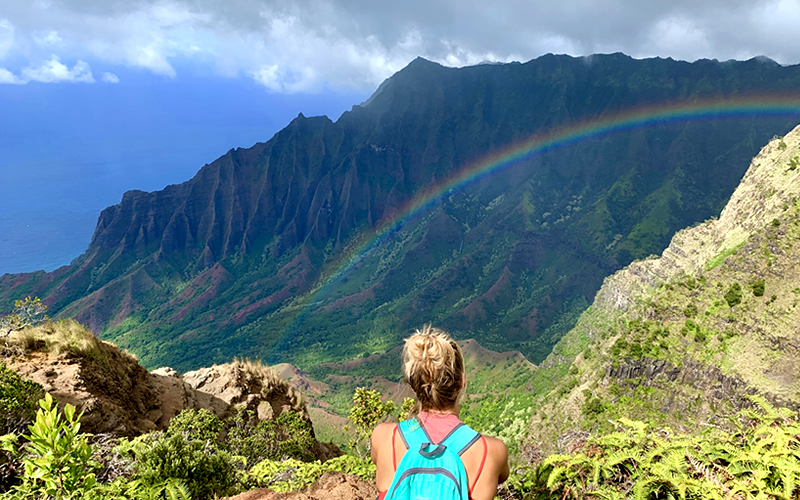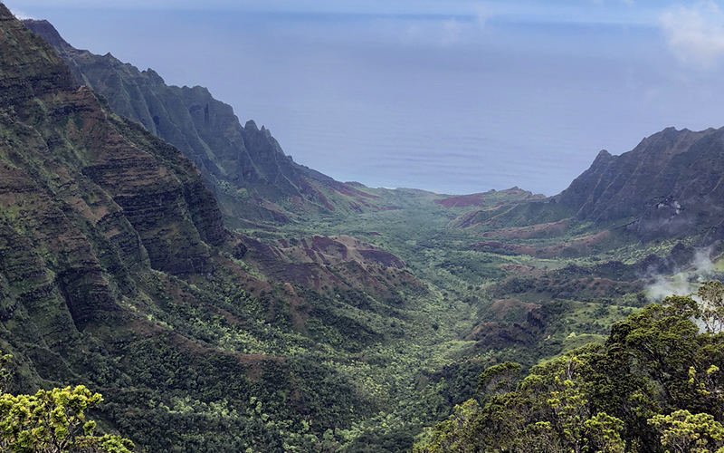 Morning ridge hike with sweeping views of the Pacific Ocean, Na Pali Coast, Kalalau Valley, and surrounding ridges. Finish the day with a breathtaking canyon hike to the top of Waipoo Falls.